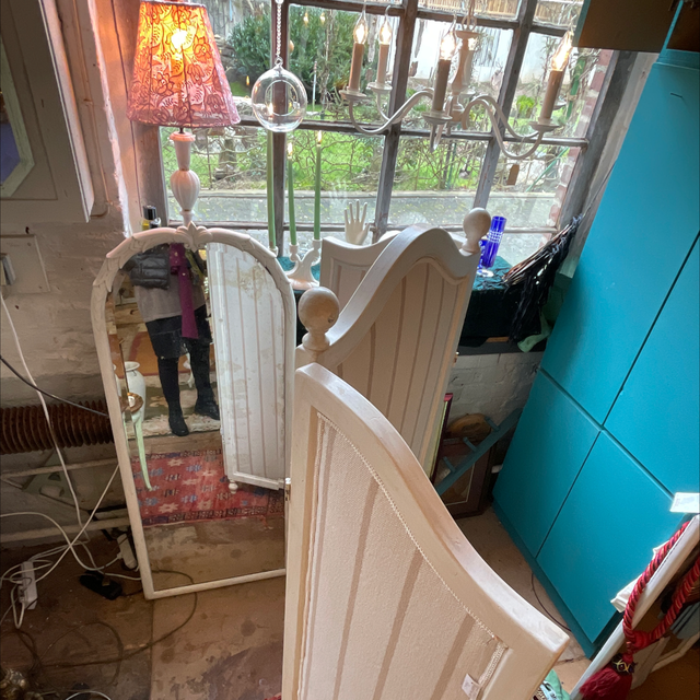 Weißer antiker Paravent Shabby chic