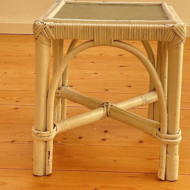 Weißer kleiner Bambus Tisch Blumentisch / Nachttisch