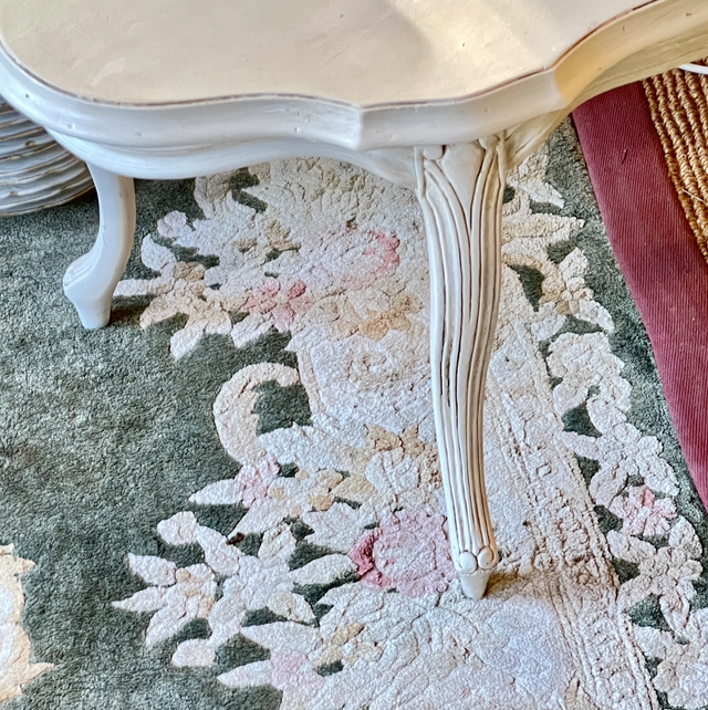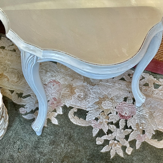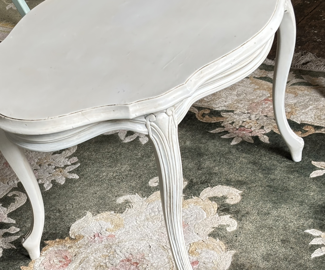 weißer ovaler Tisch aus Holz, von Hand koloriert mit einem Antik- finish versehen . True Vintage Produkt. Upcyclingfurniture by Freudenhaus Interieurs