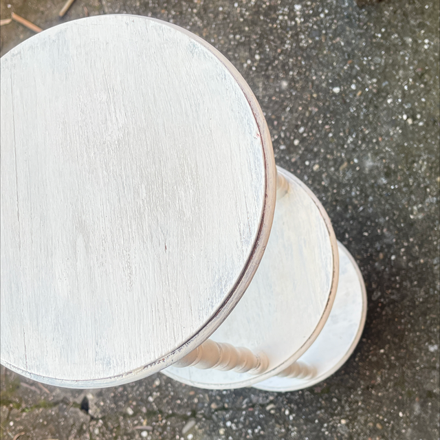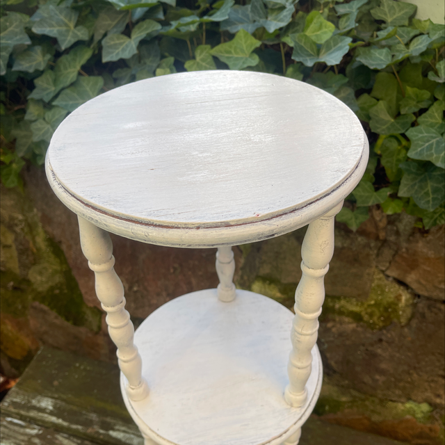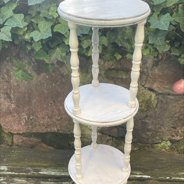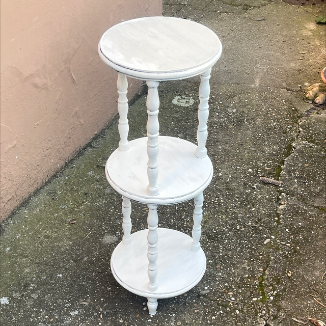 Weißer runder antiker gedrechselter Tisch mit 3 Ebenen